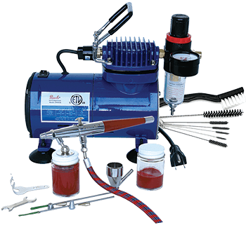 This kit combines the Paasche double action VL-SET, D500SR compressor and AC-7 cleaning kit.