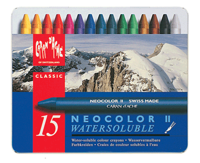 NEOCOLOR II water-soluble wax pastels are a product of Caran d'Ache innovation.They combine the color expertise of Caran d'Ache with the great “Swiss Made” tradition. 42 completely new colors created from original pigments extend the Caran d'Ache palette to 126 colors. NEOCOLOR II wax pastels are exceptional, both for their quality and the techniques they make possible. They provide the opportunity for all professional and amateur artists to fully express their talent and imagination.
