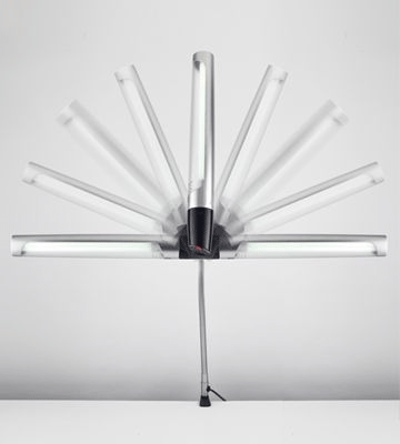This beautifully designed powerful artist lamp is chic and modern. It is supplied with two clamps for optimal flexibility and versatility. The heavy-duty, universal clamp allows the lamp to be attached to virtually all floor standing metal and wooden easels, table easels, on a drafting table or work bench in a matter of seconds! The 24W low heat daylight tube is now longer and provides an even wider spread of perfect white light (equivalent to 185W). Have total control over your creativity with the right light exactly where you need it via a 360° degree shade rotation and 320° degree head-flip system which allows the lamp head to swivel completely to a different area, maximizing light coverage up to an area of 30" x 30".